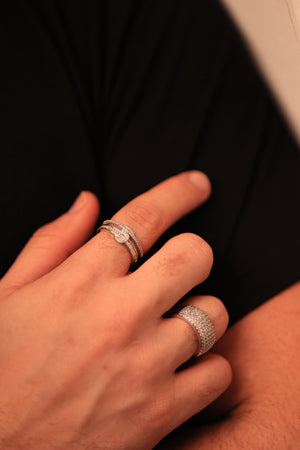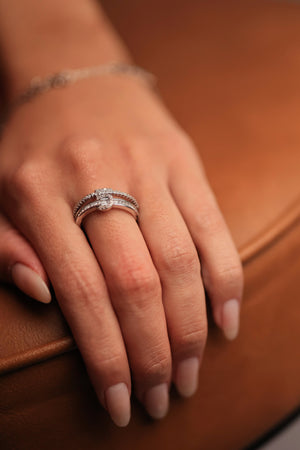 Este anel com cinco pedras cravejadas e banho de ródio oferece um acabamento sofisticado e duradouro. O banho de ródio proporciona resistência ao desgaste e brilho intenso, garantindo elegância e durabilidade para o uso diário ou ocasiões especiais. Ideal para quem busca uma peça delicada com toque moderno e acabamento refinado.