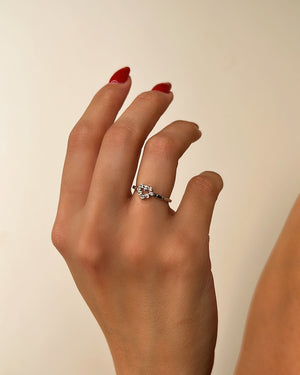 Este lindo Anel Madri II possui um formato de coração delicado e elegante, perfeito para qualquer ocasião. Possui um design cravejado, adicionando um toque de brilho e charme à sua aparência. Um presente especial para mostrar seu amor e dedicação.