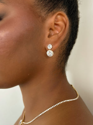 Este brinco elegante apresenta círculos cravejados com zircônias e banhados em dourado. Adicione um toque de sofisticação ao seu look com essa bela peça. Ideal para festas e ocasiões especiais, garantindo um brilho sutil e elegante.