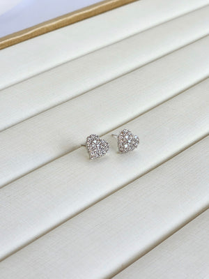 Brinco Coração Cravejado Banho Ródio