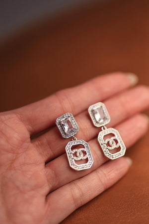 Brinco Pendente Inspiração Cravejado Banho Ródio