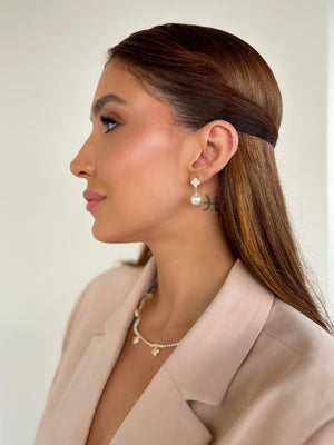 Brinco Trevo Cravejado com Pérola Dourado