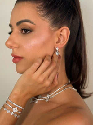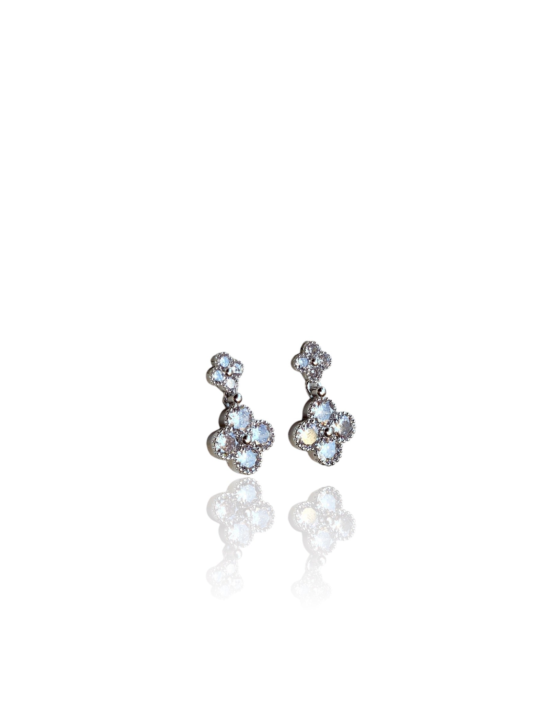 Brinco Pendente Trevo Com Zircônias Ródio