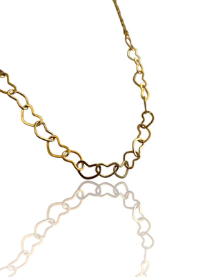Este lindo colar apresenta um design único com elos em forma de corações dourados. É perfeito para adicionar um toque romântico ao seu visual e também pode ser um presente especial para alguém especial. Feito com materiais de alta qualidade, este colar traz elegância e durabilidade.