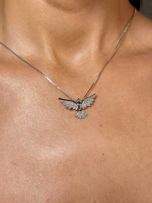 Manifeste sua fé e devoção com o Colar Espírito Santo Cravejado em banho Ródio. Um símbolo de proteção e esperança, a pomba é cravejada no colar, representando a presença divina na sua vida. Feito com materiais de alta qualidade, esse colar é uma expressão de devoção e fé duradoura.