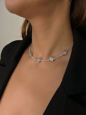 Este colar inspiração é banhado em ródio, o que proporciona um acabamento brilhante e resistente. Seu design único irá adicionar um toque de elegância e sofisticação ao seu visual. Ideal para uma ocasião especial ou para uso diário, este colar é a escolha perfeita para mulheres que desejam se destacar com estilo e qualidade.