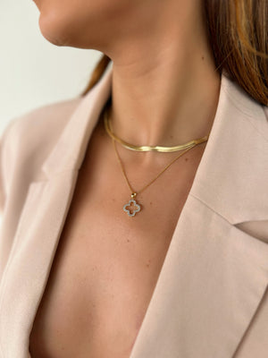 Este colar trevo vazado inspira sorte e abundância. Com um banho de ouro 18 k, é o acessório perfeito para adicionar um toque elegante e glamorosos ao seu visual. Disponível na cor dourada, ele é resistente e duradouro, garantindo que você possa usá-lo em diversas ocasiões.