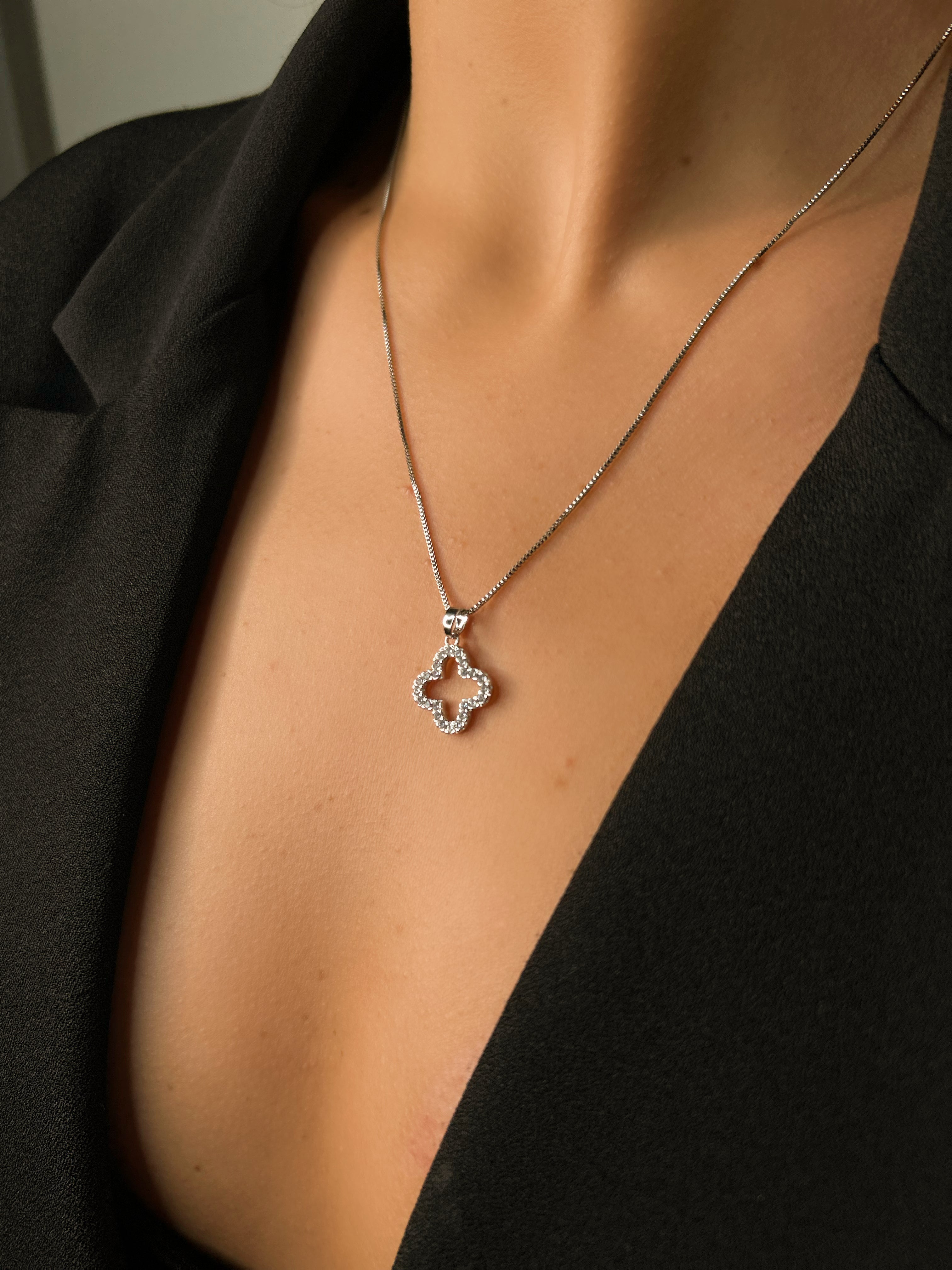 Este colar trevo vazado inspira sorte e abundância. Com um banho de ouro 18 k, é o acessório perfeito para adicionar um toque elegante e glamorosos ao seu visual. Disponível na cor dourada, ele é resistente e duradouro, garantindo que você possa usá-lo em diversas ocasiões.