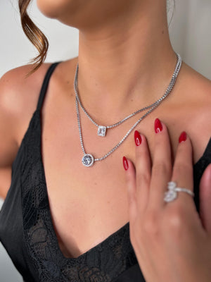 Este Colar Riviera com um Pingente Circulo é banhado em ródio e é uma peça clássica e elegante para adicionar ao seu guarda-roupa. Seu design atemporal e acabamento brilhante trará um toque de sofisticação a qualquer look. Perfeito para qualquer ocasião, este colar é uma ótima escolha para quem busca sofisticação e estilo.