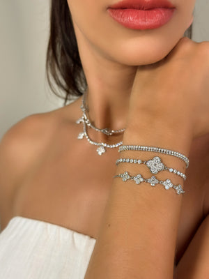 A pulseira Trevo Banho Ródio é ideal para quem busca um acessório elegante e sofisticado. Com um acabamento em banho de ródio, ela é resistente e durável, garantindo um brilho especial que vai complementar qualquer look. Aposte em boa sorte e estilo com o emblemático trevo em seu design.