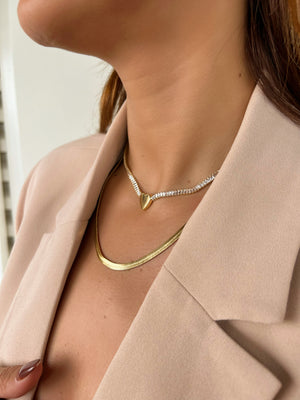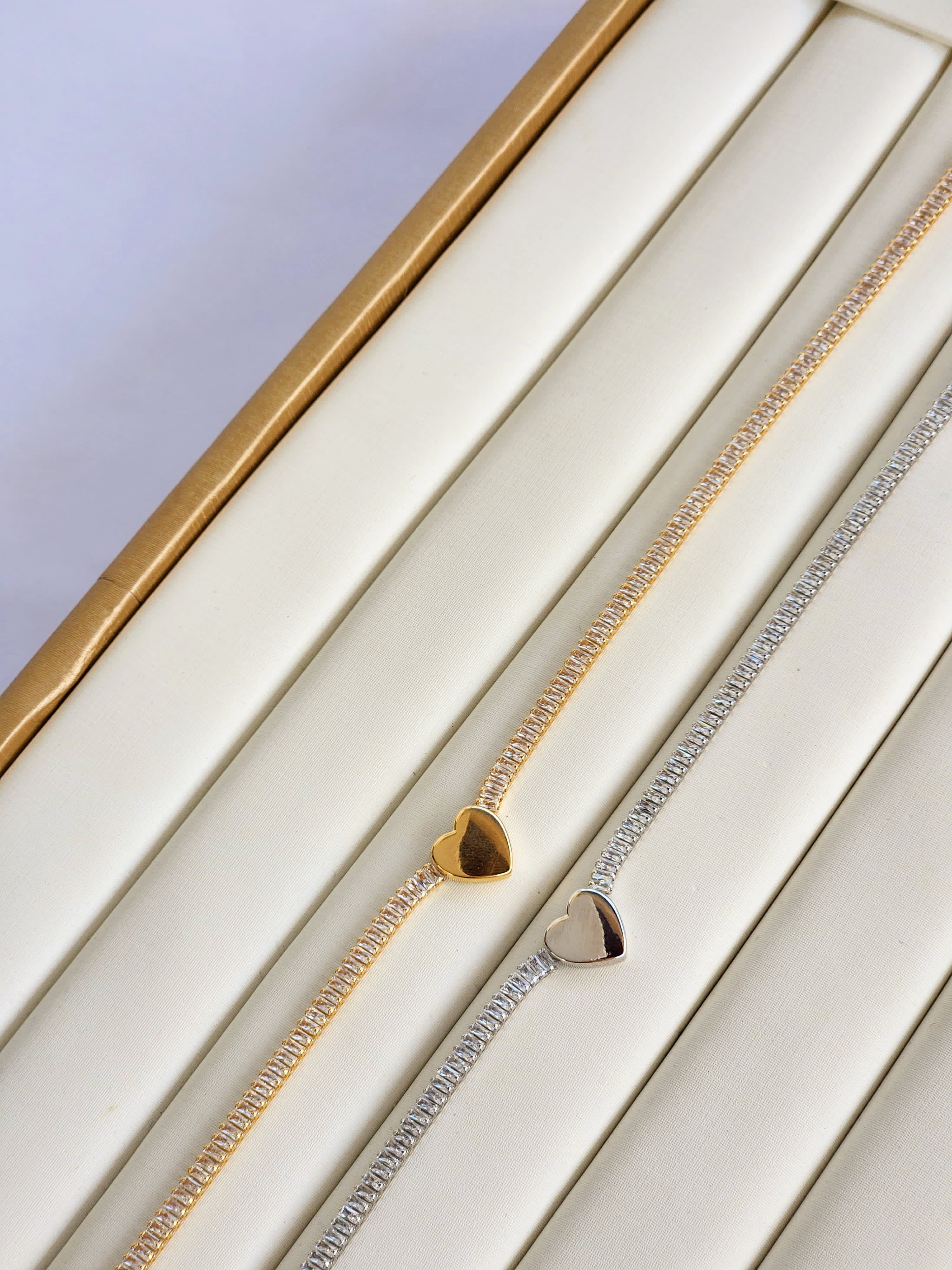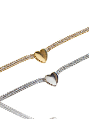 A bolsa Riviera Coração Baguete Dourada combina elegância e sofisticação. Feita com dourado reluzente, possui um design exclusivo em formato de coração, trazendo um toque de romance ao seu look. Ideal para adicionar um toque de glamour e estilo a qualquer ocasião.